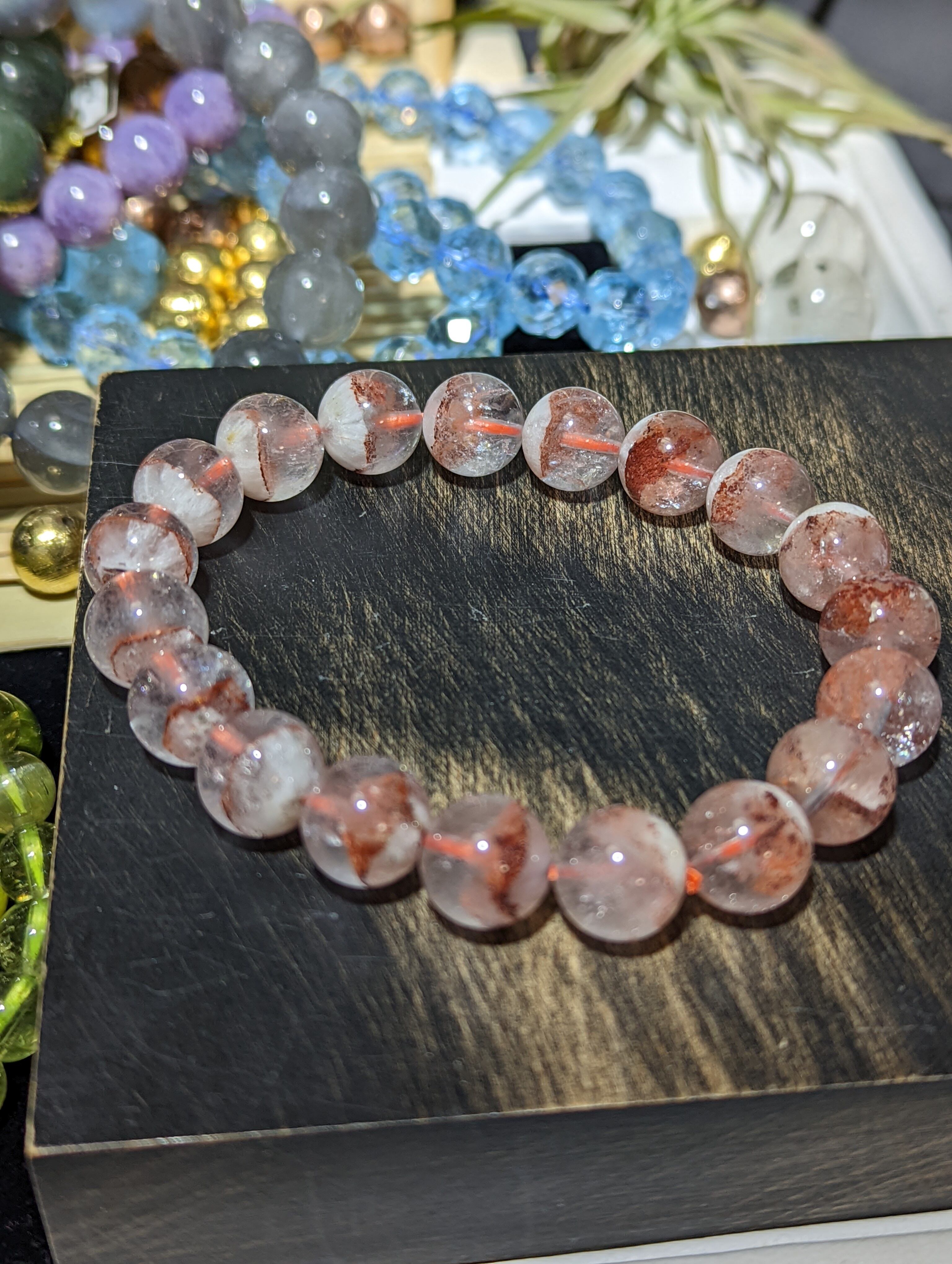 B0423-04 レッドファントムインクォーツ10.5mm 16.5センチ